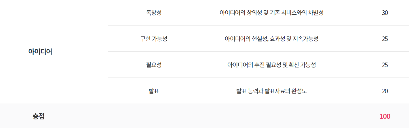 파스-타 기반 서비스 개발 및 아이디어 공모전에서 아이디어 부분 본선 심사 기준은 다믕과 같았다.