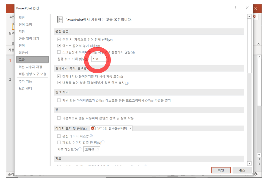 옵션 창에서 [고급] -> [실행 취소 최대 횟수]를 최대 150까지 늘릴 수 있다.
